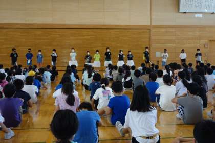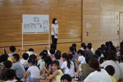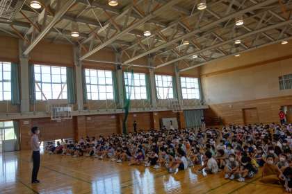 プール開きの様子です。プール使用上の注意点や健康面の注意点について話を聞きました。約束を守って、充実した水泳学習にしましょう。
