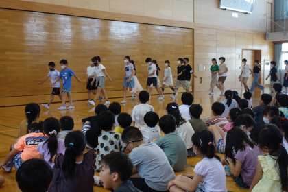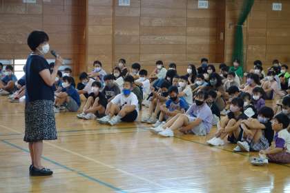 式の後は、6年生が静かに退場。下学年はよい手本をまねしていきましょう。