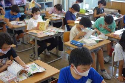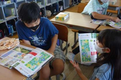 図工の学習の様子です。新しく「まぼろしの花」の学習に取り組みました。「まぼろし」という言葉の意味を確かめたり、教科書に掲載されている絵を鑑賞したりして、イメージを広げました。