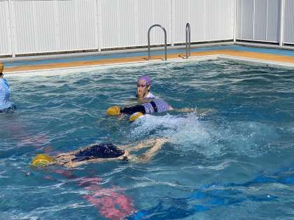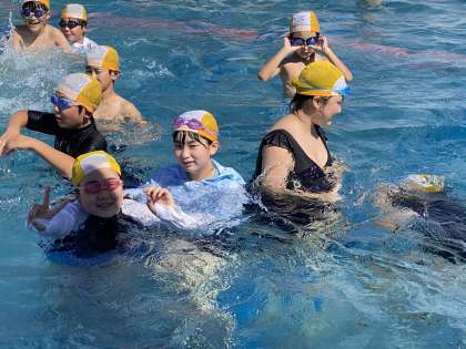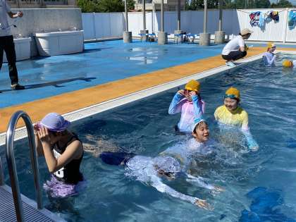晴天に恵まれた今年度初プールでした。初回だったため、今の自分がどこまで泳げるのか泳力を確認したり、水に慣れたりする活動をしたりしました。