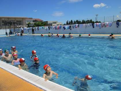 6年生さんと一緒にプールに入り、楽しい声が響きました。