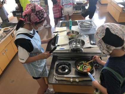 家庭科の調理実習を行いました。朝食づくりの実習です。時間のない朝の時間にどれだけ手早く料理ができるのか、安全に気をつけながら取り組みました。