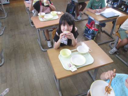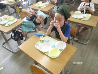 本日は、選択献立でした。自分の選んだおかずを美味しく食べ、また友だちの選んだ献立を見て、「○○は、ゼリーが好きなんだ〜」と友達のことを知るきっかけにもなりました。次回は12月にあるとのことで、子供たちは楽しみにしています。