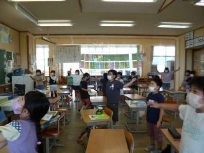 業間には、わくわくトレーニングがありました。運動委員会のビデオに合わせてストレッチをしています。音楽に合わせてノリノリです。