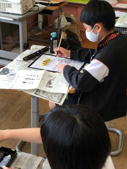 用紙に合わせた文字の大きさで書くことを目標として練習してきましたが、今日はその清書でした。