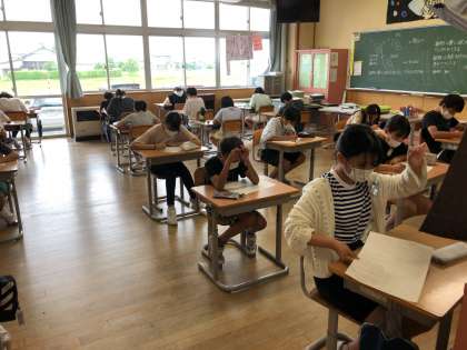 今日は国語のテストに挑戦です。明日以降、算数、社会と続きます。
