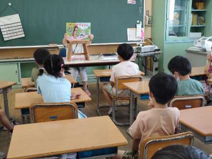 朝の読み聞かせがありました。今日は低学年と、のぞみ級・あおぞら級でした。子供たちは、1学期最後の読み聞かせを、楽しみに待っていました。