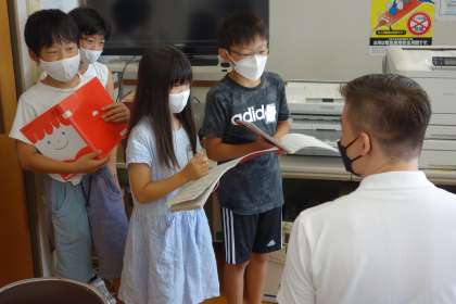 新聞作成のために取材を行いました。取材を終え、教室に帰ってきた子供たちは、「いろいろお話を聞けた!」「いい記事が書けそう!」と生き生きとした表情でした。