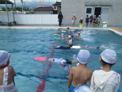本日は、水泳教室最終日でした。それぞれがこの3日間で頑張って取り組んだことを、みんなの前で発表しました。得意な子、苦手な子がそれぞれに拍手でたたえ合い、素晴らしい三日間となりました。