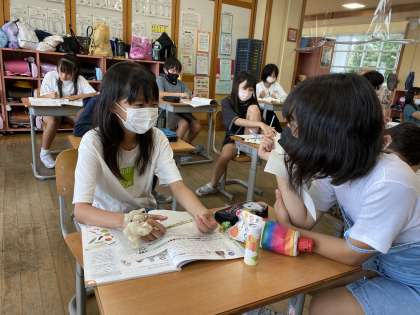 家庭科で「ゆでる」の学習をしてきました。夏休みの宿題の1つとして、家族のためのゆで野菜サラダを作ります。今日はそのための計画を立てました。自分の家族にはどんなサラダを作ってあげようか、そのためにどんな材料がいいのだろうと家族のことを思いながら考えていました。