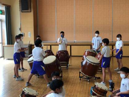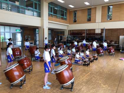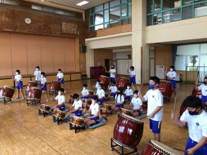 夏休みに行われる熊野神社の式年遷宮祭に向けて太鼓の練習をスタートしました。昨年の記録を振り返り、そのときよりも高まりたい、極めたいという思いをもった子供たちでした。