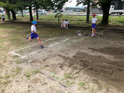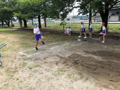 次は、チャレンジ陸上記録会に向けて始動です。今日は、ソフトボール投げと走り幅跳びの練習に取り組みました。一人一人が目当てをもって取り組みます。