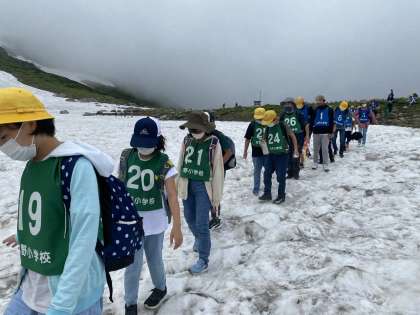 夏でも雪が残っている立山。雪の上も歩いてみました。夏の雪は貴重な体験ですね!