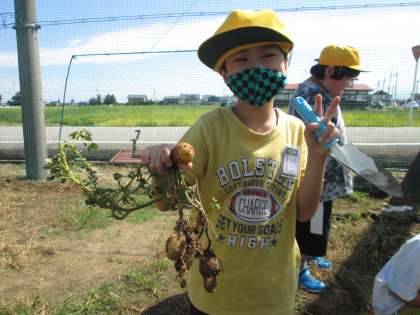 始業式では、姿勢を正して真剣な表情で式に臨んでいました。また、1学期から育てていたじゃがいもの収穫をしました。とても嬉しそうでした。