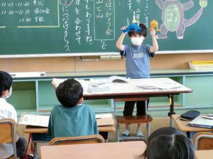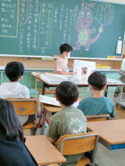 始業式では、校長先生から、2学期は、同じ「きく」でも「聞く」より「聴く」をがんばろうというお話がありました。「聴」という漢字は、「耳+目、心」でできています。人の話は、「耳と目と心」できこうというお話を聴いた子供たちは、友達の発表を「耳と目と心」をつかって真剣に聴いていました。