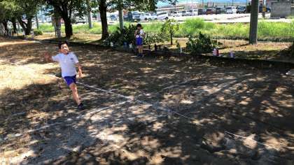 ソフトボール投げや走り幅跳びの練習を行いました。少しずつ遠くに飛ばしたり跳んだりできるようになってきました。