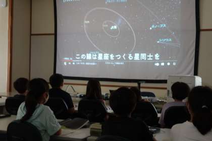 「夏の星」の学習の様子です。夏休み中も夏の星空を眺めた子供たちが多くいました。今日は、パソコン室の大スクリーンで星や星座について調べました。