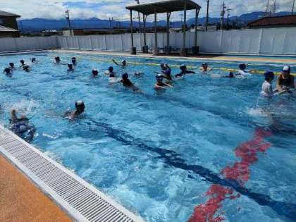8月24日の登校日と本日の水泳学習で、水泳記録会を行いました。「1年生のときよりたくさん泳げたよ」と嬉しそうに話をしている子供たちもおり、1学期の水泳教室や夏休みのプールで、力が伸びたことが伺えました。今日は、残りの時間で、名残惜しそうにプールの中で友達と遊んでいました。