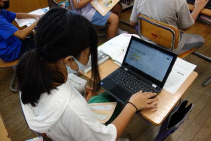 1年生から記録をしている「わたしの健康」を見ながら、自分の身長の変化や伸びを確かめました。気付いたことを交流するうちに、人によって伸びが大きな時期が違うことに気付きました。