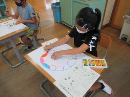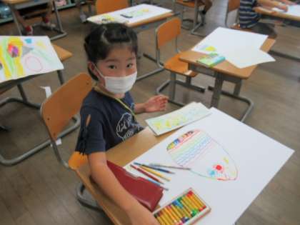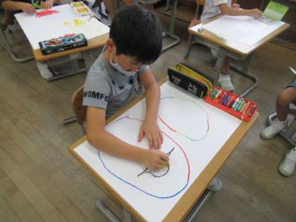 図画工作科の学習の時間に「ふしぎなたまご」を想像を膨らませながらかきました。