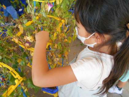 「20個もとれたよ」「またおうちであさがお育てたい」といった意欲的な声のほかにも「最初6個しか植えていないのになんで増えたんだろう」といった疑問の声も聞かれました。疑問をもち、学習に取り組む素敵な1年生でした。