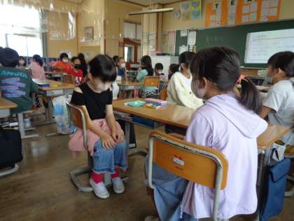 学級活動では、「聴」をテーマに活動しました。グループになり、ゲーム形式で改めて自己紹介をしました。相手の話を聴かないと自分が話すことができないようになっており、身を乗り出して聴く姿が多く見られました。またペアワークで、よい聴き方と悪い聴き方の両方で話し合いをしてみました。相手の話を聴く大切さに気付くことができました。