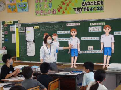 大人に近づくと、体の外にはどんな変化が起こるのかな?ということを一緒に考えました。