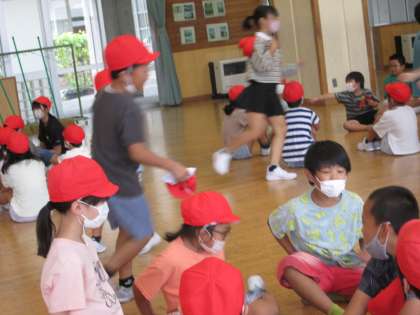 縦割り班で、6年生さんが考えてくれた遊びをしました。色々な学年の人と交流ができ、子供たちは「楽しかった」と言いながら、教室に戻ってきました。これからも様々な活動を通して、つながりを深めていってほしいと思います。