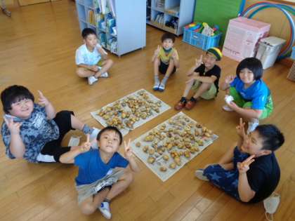 先日、総合的な学習の時間・自立活動の学習で育てた再生野菜のジャガイモを収穫しました。芽や根が出て、ふにゃふにゃで食べられなかったジャガイモを種芋にしました。たくさんのジャガイモが採れて大喜びです。