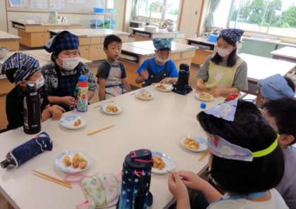 のぞみ・あおぞら級「収穫した再生野菜をおいしく食べました」