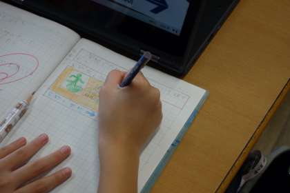 社会の学習の様子です。災害で学校が避難所になったとき、校舎内外に災害時のために様々な目的で使用されます。今日は、どのように使用されるのか予想を立てたり、実際の資料を見たりして理解を深めました。