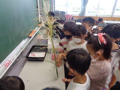 読み聞かせでは、明日が十五夜ということもあり、お月様に関連したお話でした。また、ススキを持ってきてくださいました。十五夜といえば、お団子しか出てこなかった子供たちでしたが、うさぎやススキとたくさんのものが連想できるようになりました。ボランティアの方々ありがとうございました。