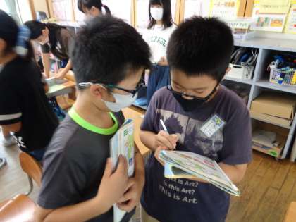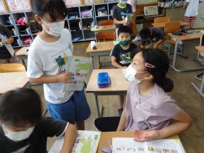 外国語では、どの時刻が好きでなんで好きなのかをペアで言い合いました。