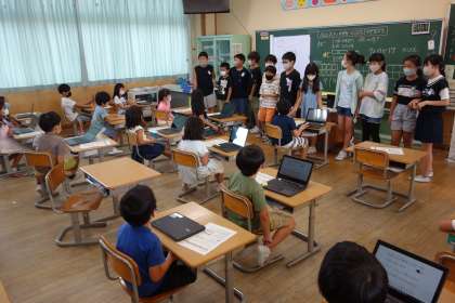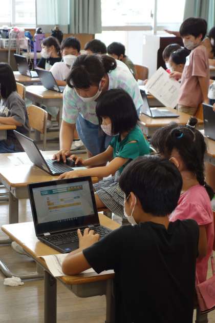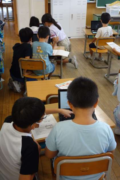 1年生のクロームブック操作のお手伝いに行ってきました。