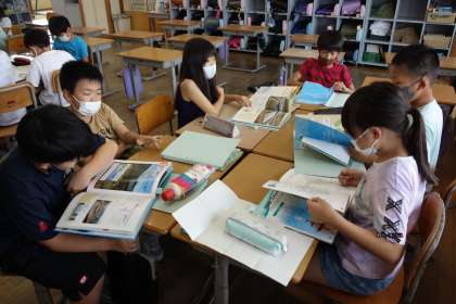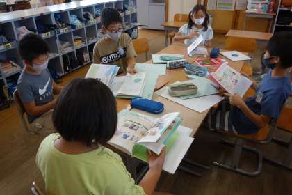 各チームに分かれて調べたことを振り返り、何を伝えたらよいのかを考えました。