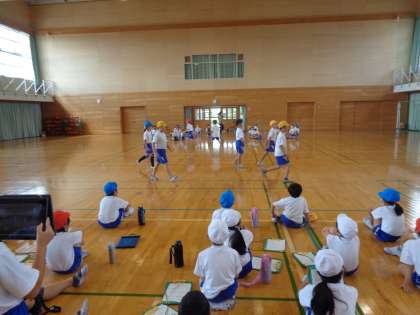 体育科では、リズムダンスの発表会を行いました。グループごとの工夫やアレンジが多く見られました。また、鑑賞している子供たちは、手拍子をしたりかけ声をかけたり、あたたかい雰囲気で発表会を行うことができました。