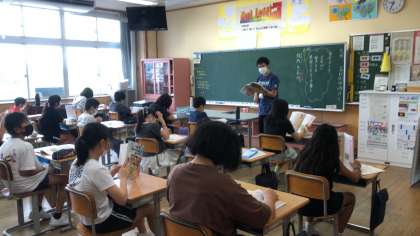 今日の道徳の時間は、6年生の先生が5年生の教室にやってきて授業をしました。