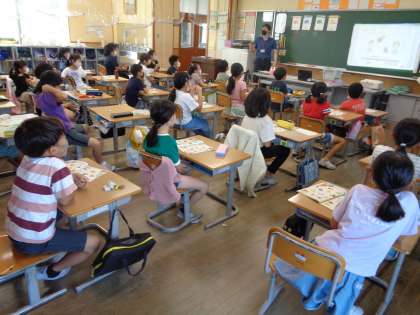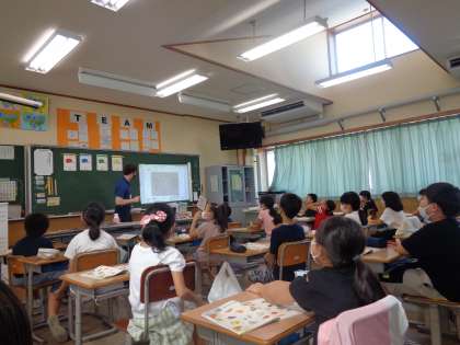 外国語活動の様子です。「Do you like 〜?」や「I like 〜」の表現を学習しました。
