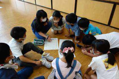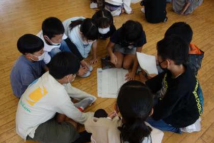 1回目の宿泊学習事前学習を行いました。3年生と一緒に、目当てを決めたり、係分担を決めたりしました。