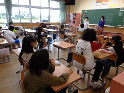 つながりタイムに「大地」「大祭」で分かれて、練習の目当てを立てています。
