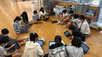 学習発表会のスローガンについて、委員会のみんなで考え、案をつくりました。各教室の意見を聴き、決定します。