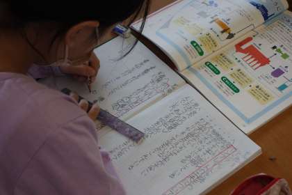 子供たちは、パンフレットに関する学習を行ってきました。今日は、これまでの学習を振り返り、パンフレットの工夫についてまとめました。