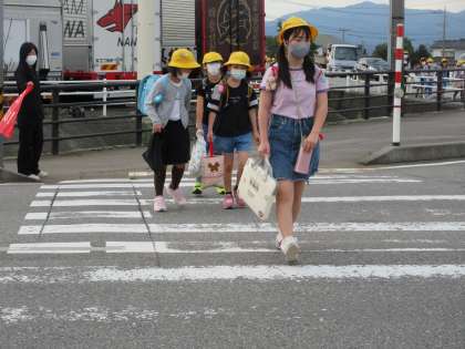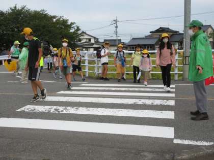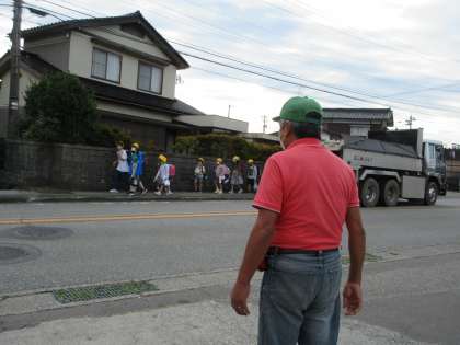 たくさんの交通指導の方々が、子供たちの様子を見守ってくださっています。