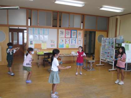 トンボを捕まえたり、どんぐりを拾ったりして秋を感じました。学習やなわとびも頑張っています。