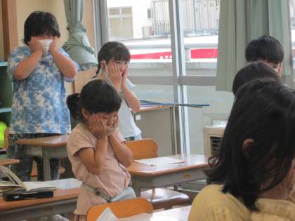 声をひびかせる感覚を知って、みんなで「かえりみち」を声を合わせて歌いました。