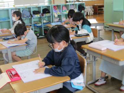 漢字の練習に丁寧に取り組んでいます。今は1日に1字ずつ、じっくり練習しています。