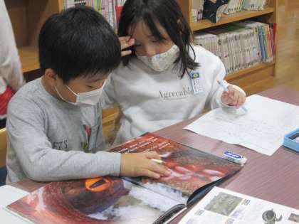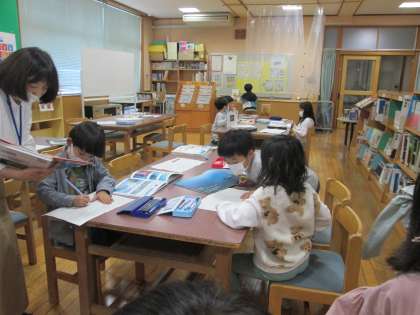 学習したことを生かして、今度は自分で紹介したい生き物の隠れ方を調べました。みんな、すごい工夫をして身を隠していることにビックリしました。