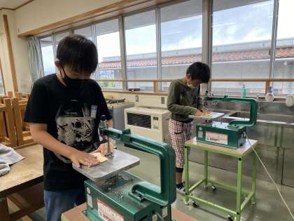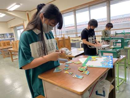 糸のこを使って図工の作品を仕上げています。休み時間も作品づくりに集中して取り組んでいる姿が見られました。