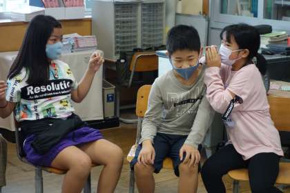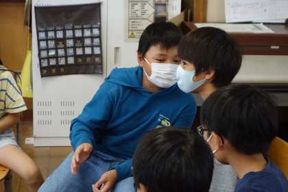 宿泊学習の夜の集いで行う企画のリハーサルを、学級で行いました。4−1は伝言ゲームを行います。みんなで盛り上がりました。