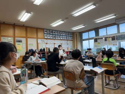 学習を終え、宮沢賢治が「やまなし」を通して伝えたかったことを話し合いました。表現の仕方、構成、賢治の人柄等、様々な視点で考えを伝え合い、学びを深めることができました。
